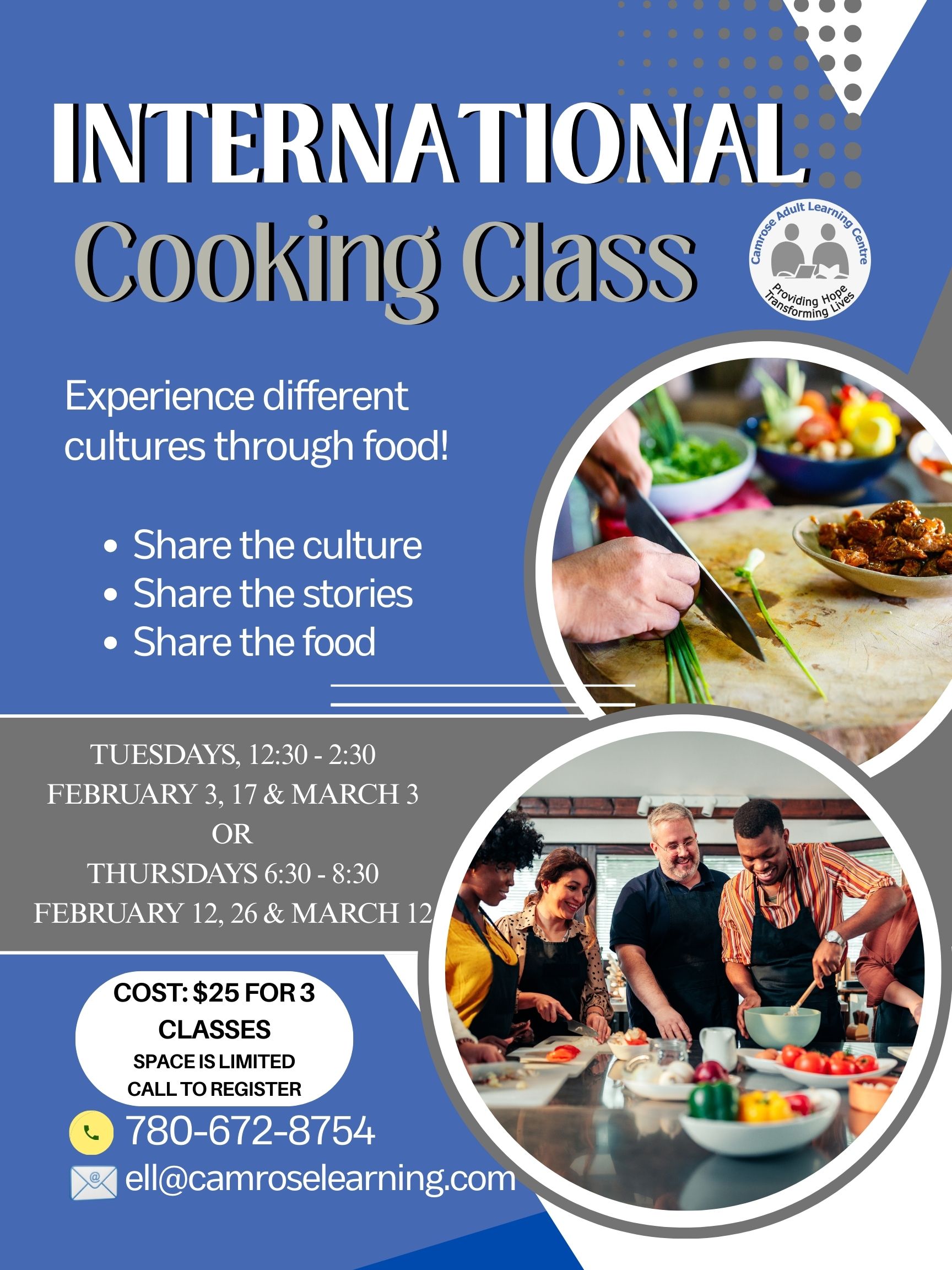 Join us for some International cooking classes and conversations.